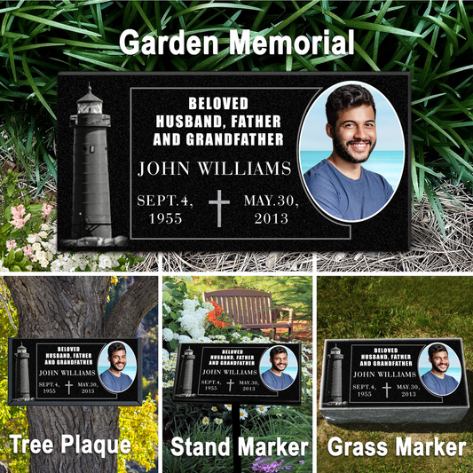 ADFSTONE Memorial Plaque & Granite Marker Personalized | Theme: Lighthouse (Single) | Ratio: 1v2 Rectangle