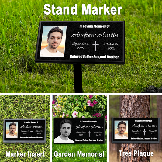 ADFSTONE Grave Marker & Memorial Plaque Personalized | Theme: Single (Right) | Ratio: 1v1.5 Rectangle
